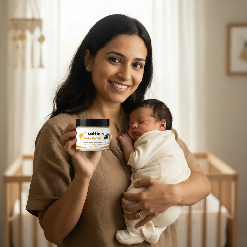 Softie replaces the "eczema graveyard" with ancestral nourishment. We created The Baby Barrier to stop the trauma of scratching and restore familial sleep by rebuilding skin rather than just masking it.